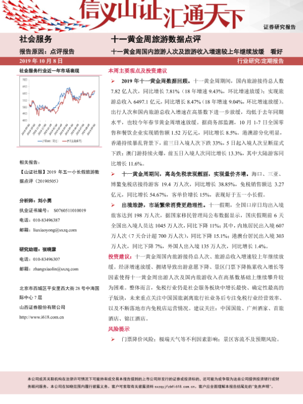 【山西证券】【20191008】十一黄金周旅游数据点评:国内旅游人次及旅游收入增速放缓-7页 行业研究