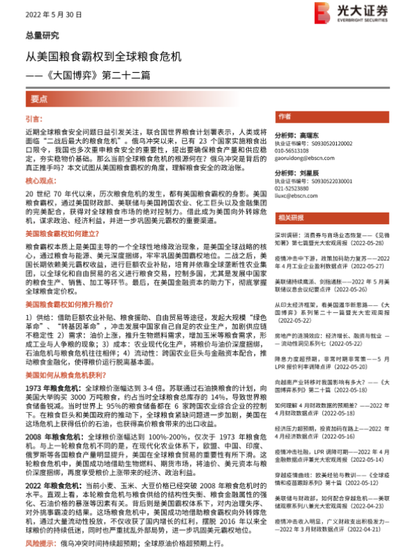 【光大证券】【20220530】从美国粮食霸权到全球粮食危机-29页 行业研究