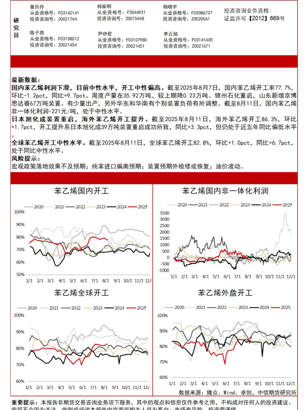 【中信期货】【20250811】海外苯乙烯开工提升,全球开工中性-1页 证券期货研究报告