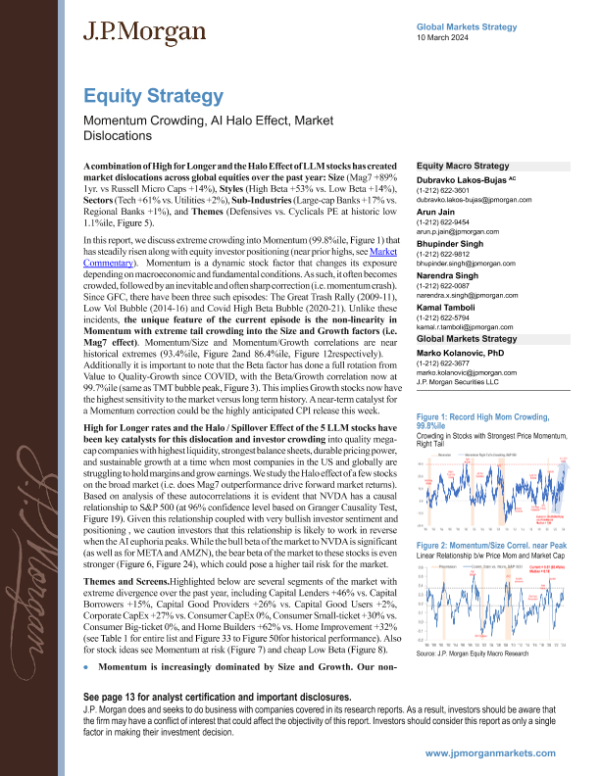 【J.P. Morgan】【20240310】JPMorgan-Equity Strategy Momentum Crowding, AI Halo Effect, Market Dislocations-17页 行业研究