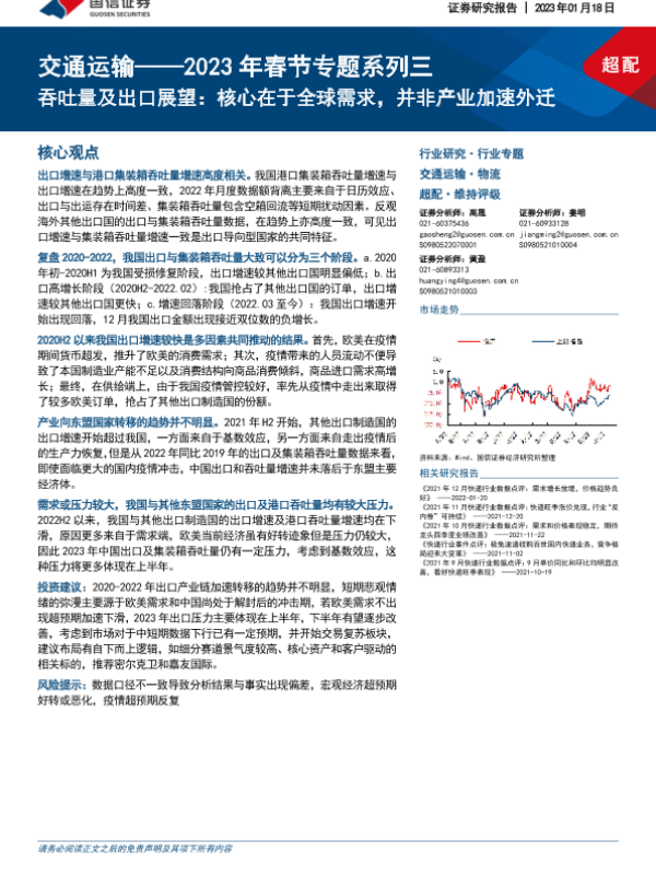 【国信证券】【20230118】交通运输——2023年春节专题系列三:吞吐量及出口展望:核心在于全球需求,并非产业加速外迁-19页 行业研究