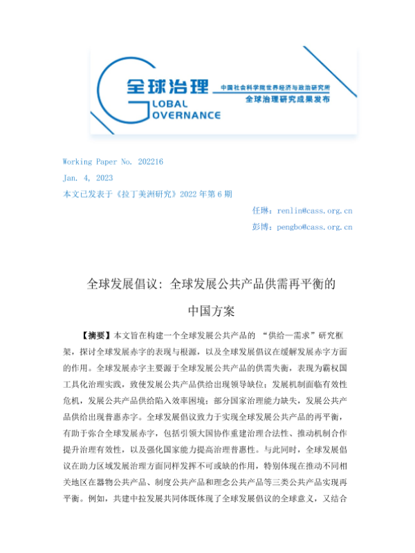 【社科院】【20230104】全球发展倡议:全球发展公共产品供需再平衡的中国方案-23页 行业研究