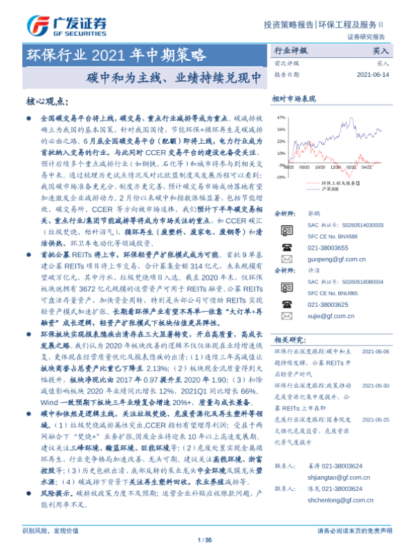 【广发证券】【20210614】环保行业2021年中期策略:碳中和为主线、业绩持续兑现中-35页 行业研究