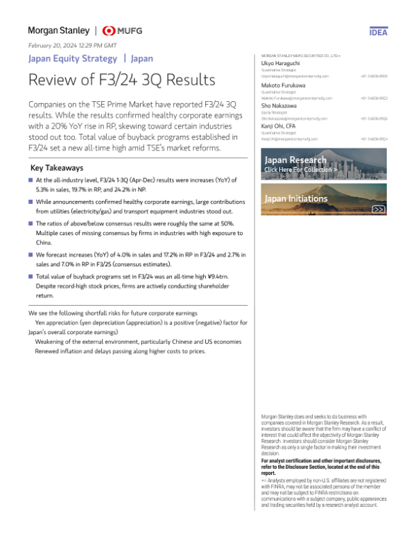 【Morgan Stanley】【20240214】Morgan Stanley-Japan Equity Strategy Review of F324 3Q Results-23页 行业研究