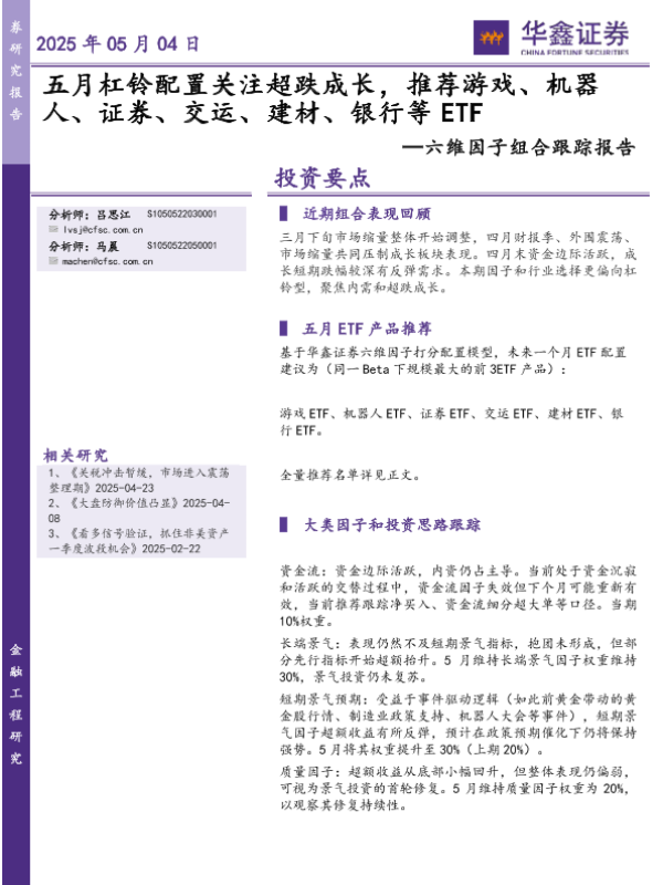 【华鑫证券】【20250504】六维因子组合跟踪报告:五月杠铃配置关注超跌成长-17页 证券期货研究报告