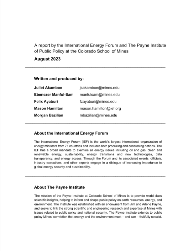International Energy Forum and The Payne Institute of Public Policy at the Colorado School of Mines