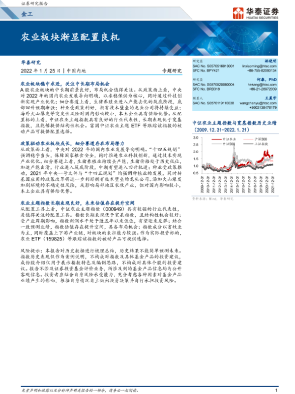 【华泰证券】【20220125】金工专题研究:农业板块渐显配置良机-15页 行业研究