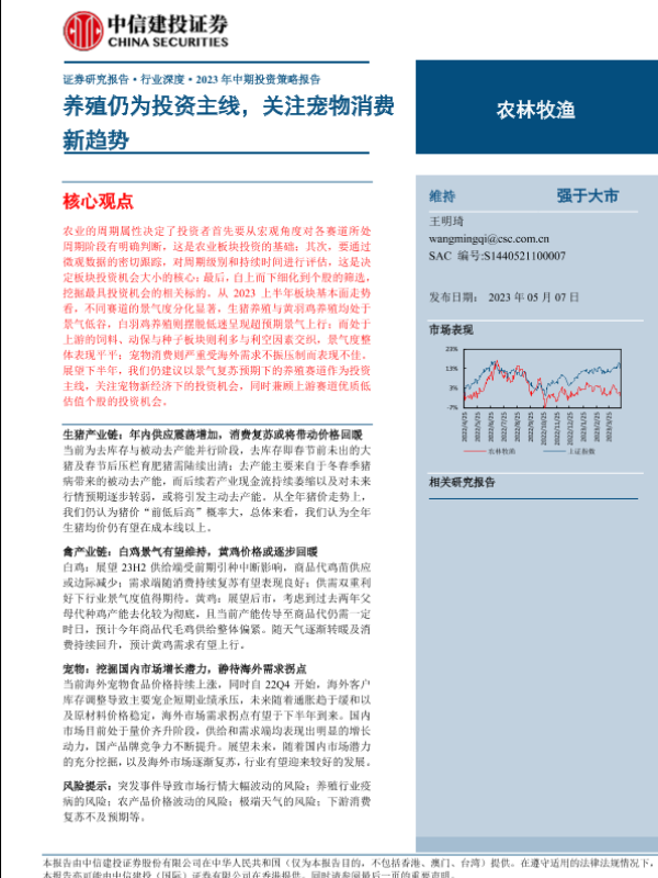 【中信建投证券】【20230507】农林牧渔行业2023年中期投资策略报告:养殖仍为投资主线,关注宠物消费新趋势-33页 行业研究