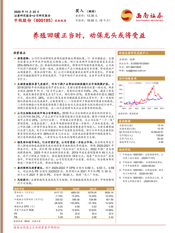 【西南证券】【20201125】20201125-西南证券-中牧股份-600195.SH-养殖回暖正当时,动保龙头或将受益-32页 行业研究