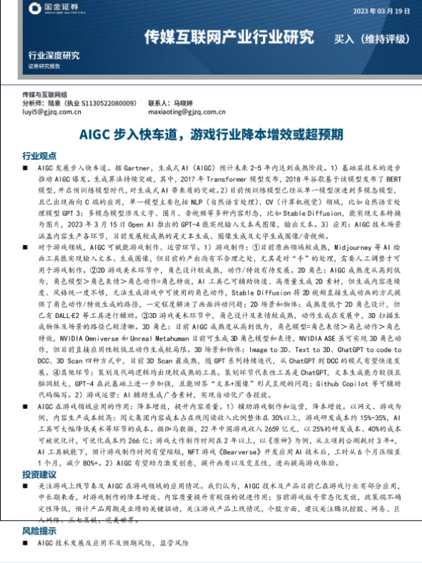 【国金证券】【20230319】传媒互联网产业行业深度研究:AIGC步入快车道,游戏行业降本增效或超预期-19页 行业研究