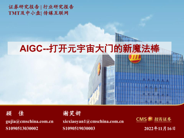 【海通证券】【20221116】传媒互联网行业AIGC:打开元宇宙大门的新魔法棒-18页 行业研究