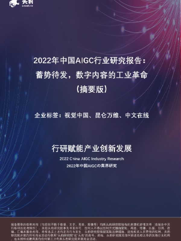 【头豹研究院】【202212】2022年中国AIGC行业研究报告- 蓄势待发-数字内容的工业革命(摘要版)-17页 行业研究
