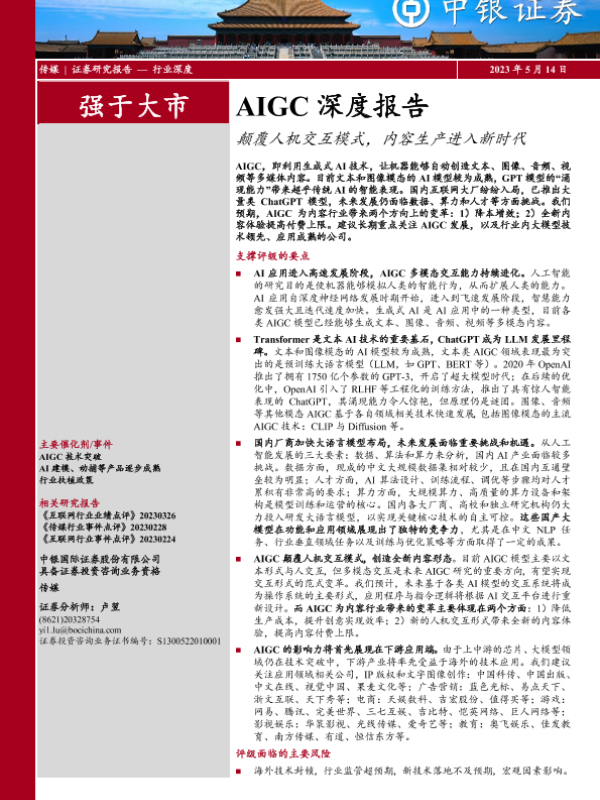 【中银证券】【20230514】传媒行业AIGC深度报告:颠覆人机交互模式,内容生产进入新时代-45页 行业研究