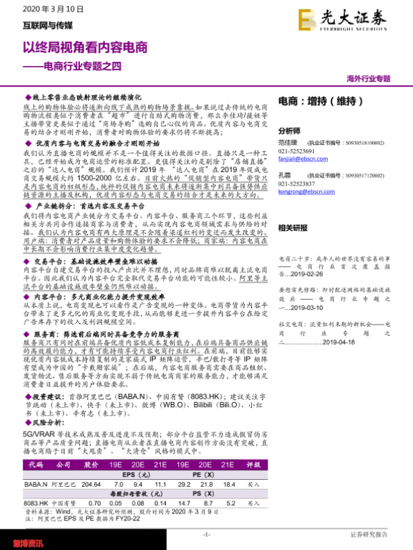 【光大证券】【20200310】电商行业专题之四:以终局视角看内容电商-19页 行业研究