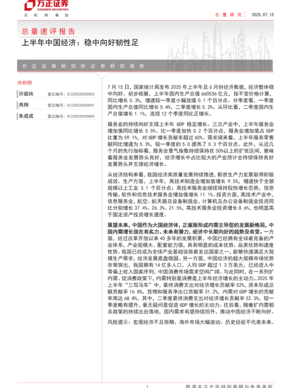 【方正证券】【20250715】上半年中国经济:稳中向好韧性足-12页 宏观策略