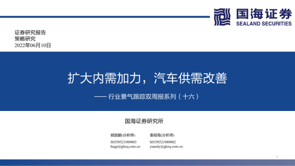 【国海证券】【20220610】行业景气跟踪双周报系列(十六):扩大内需加力,汽车供需改善-70页 行业研究