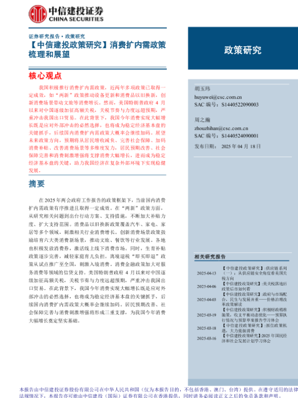 【中信建投证券】【20250418】消费扩内需政策梳理和展望-17页 证券期货研究报告