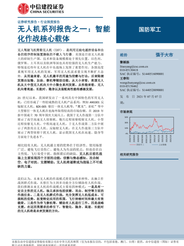 【中信建投证券】【20210707】国防军工行业无人机系列报告之一:智能化作战核心载体-22页 行业研究