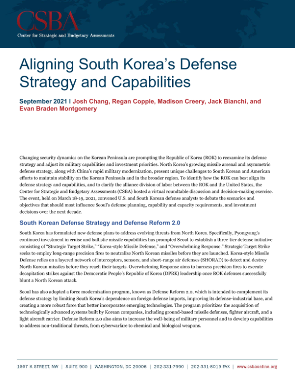 【美国战略和预算评估中心(CSBA)】【202109】调整韩国的国防战略和能力-6页 行业研究