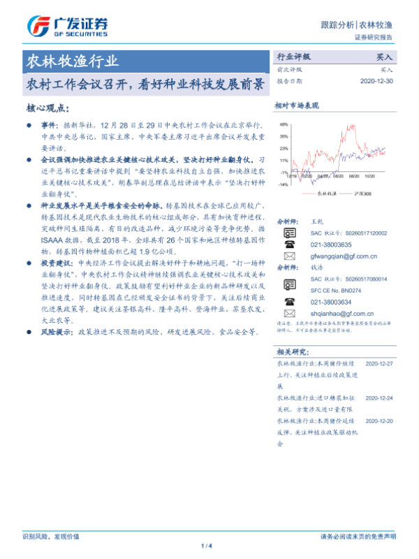 【广发证券】【20201230】农村工作会议召开,看好种业科技发展前景-4页 行业研究