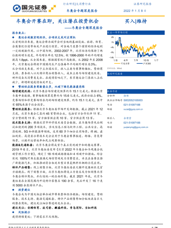 【国元证券】【20220108】大消费行业冬奥会专题深度报告:冬奥会开赛在即,关注潜在投资机会-20页 行业研究