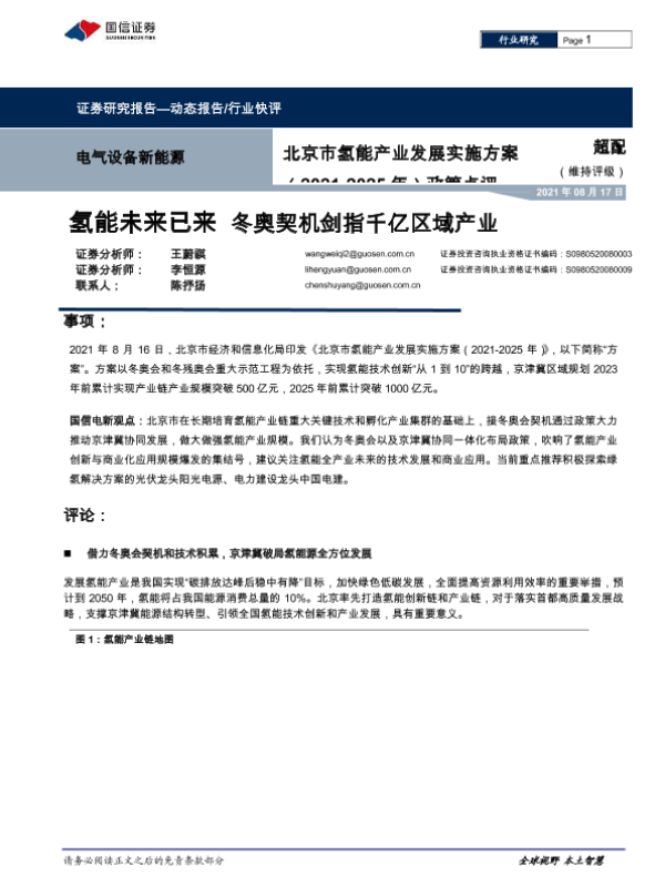 【国信证券】【20210817】北京市氢能产业发展实施方案(2021-2025年)政策点评-8页 行业研究