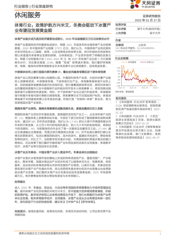 【天风证券】【20220127】体育行业:政策护航方兴未艾,冬奥会驱动下冰雪产业有望迎发展黄金期-53页 行业研究