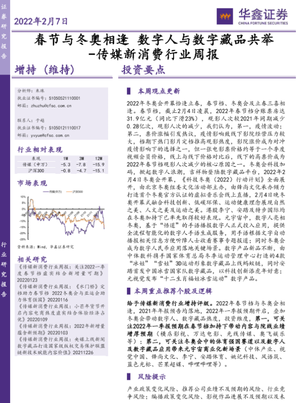 【华鑫证券】【20220207】春节与冬奥相逢 数字人与数字藏品共举-18页 行业研究