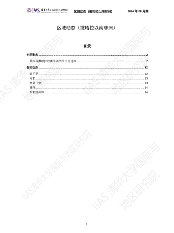 【区域动态】【202408】《区域动态》撒哈拉以南非洲地区2024年8月期:美国与撒哈拉以南非洲的民主化进程-14页 行业研究