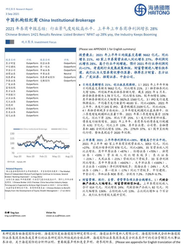 【海通国际】【20210903】2021年券商行业中报总结:行业景气度处较高水平,上半年上市券商净利润增长28%-32页 行业研究