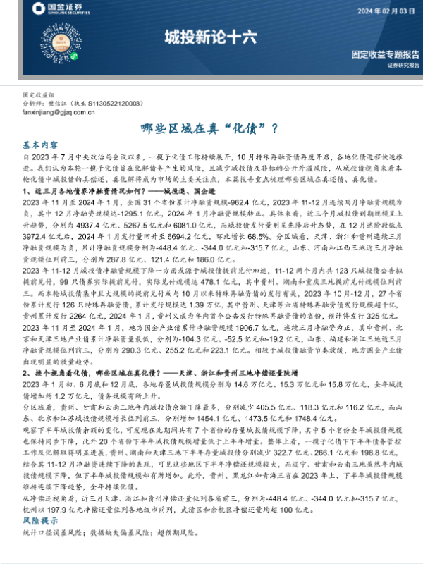 【国金证券】【20240203】城投新论十六:哪些区域在真“化债”?-15页 行业研究