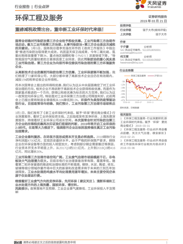 【天风证券】【20190321】重磅减税政策出台,重申新工业环保时代来临-14页 行业研究