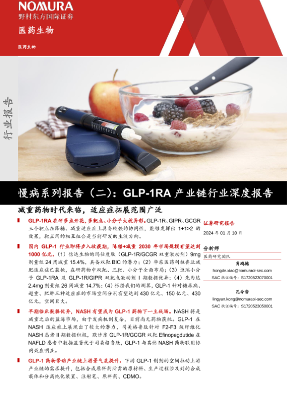 【野村东方国际证券】【20240110】GLP_1RA产业链行业深度报告:减重药物时代来临,适应症拓展范围广泛-55页 行业研究