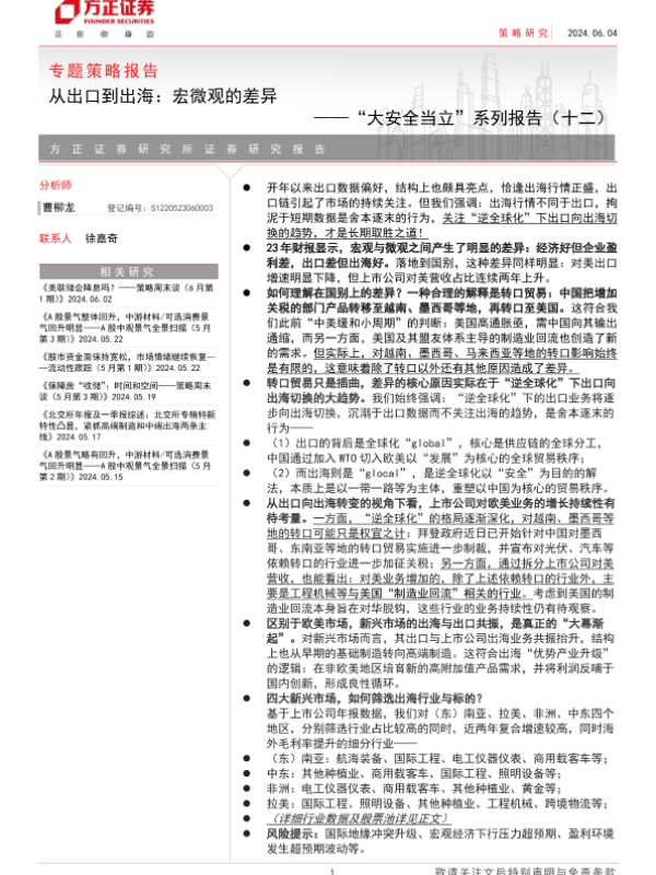 【方正证券】【20240604】从出口到出海:宏微观的差异——“大安全当立”系列报告(十二)-15页 行业研究