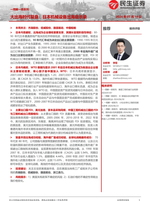 【民生证券】【20240714】大出海时代复盘:日本机械设备出海启示录-24页 行业研究