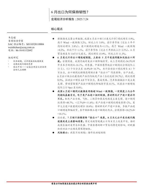 【首创证券】【20250724】6月出口为何保持韧性?-11页 宏观策略