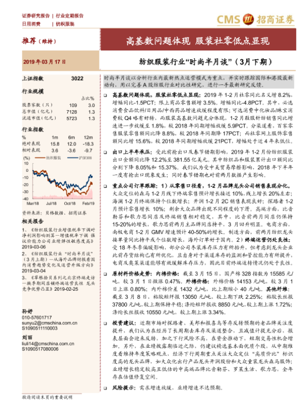 【海通证券】【20190317】纺织服装行业“时尚半月谈”(3月下期):高基数问题体现 服装社零低点显现-23页 行业研究