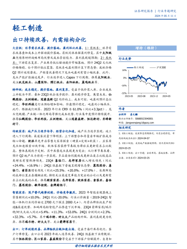 【国盛证券】【20240511】轻工制造行业专题研究:出口持续改善,内需结构分化-45页 行业研究