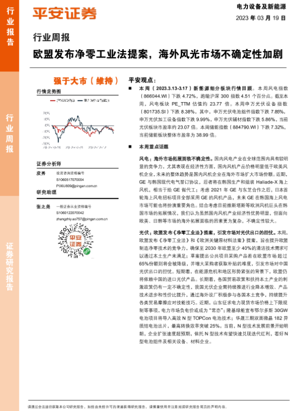 【平安证券】【20230319】电力设备及新能源行业周报:欧盟发布净零工业法提案,海外风光市场不确定性加剧-22页 行业研究