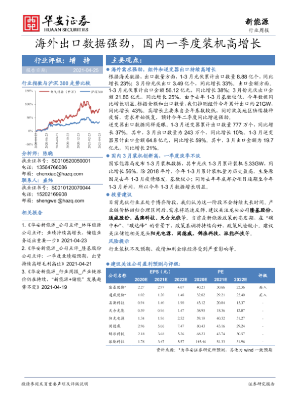 【华安证券】【20210425】20210425-华安证券-新能源行业周报:海外出口数据强劲,国内一季度装机高增长-15页 行业研究