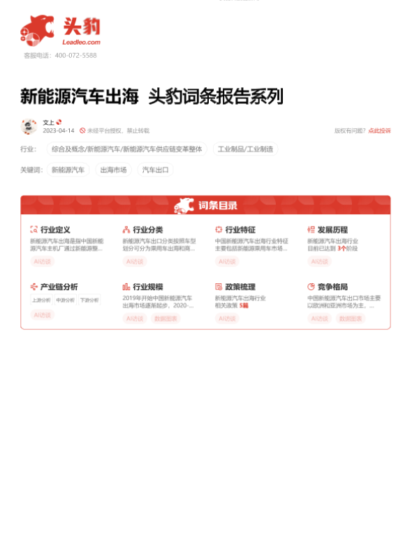 【头豹研究院】【20230706】新能源汽车出海 头豹词条报告系列-17页 行业研究