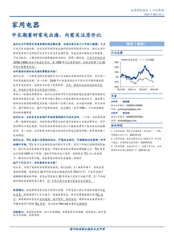 【国盛证券】【20240819】家用电器行业策略:中长期看好家电出海,内需关注质价比-65页 行业研究