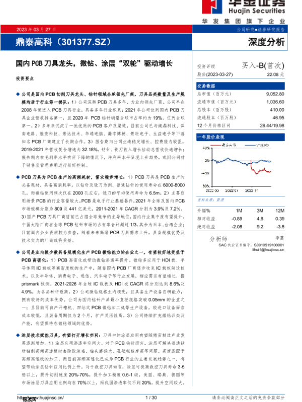 【华金证券】【20230327】国内PCB刀具龙头,微钻、涂层“双轮”驱动增长-30页 公司研究