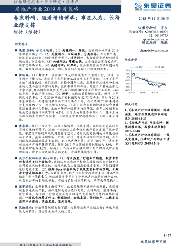 【东吴证券】【20181230】房地产行业2019年度策略:春寒料峭、短看情绪博弈;事在人为、长待业绩支撑-27页 行业研究