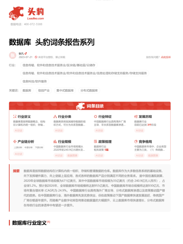 【头豹研究院】【20230721】数据库 头豹词条报告系列-20页 行业研究