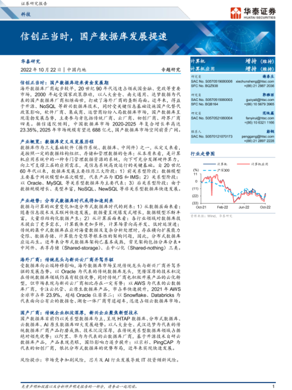 【华泰证券】【20221022】科技行业专题研究:信创正当时,国产数据库发展提速-52页 行业研究