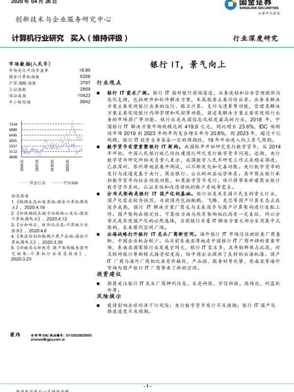 【国金证券】【20200426】计算机行业研究:银行IT,景气向上-29页 行业研究