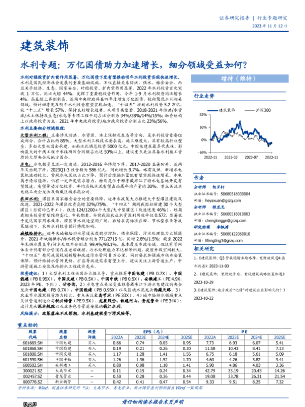 【国盛证券】【20231112】建筑装饰行业水利专题:万亿国债助力加速增长,细分领域受益如何?-25页 行业研究