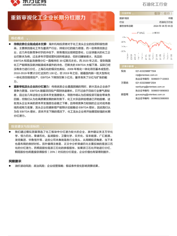 【东方证券】【20240805】石油化工行业:重新审视化工企业长期分红潜力-13页 行业研究