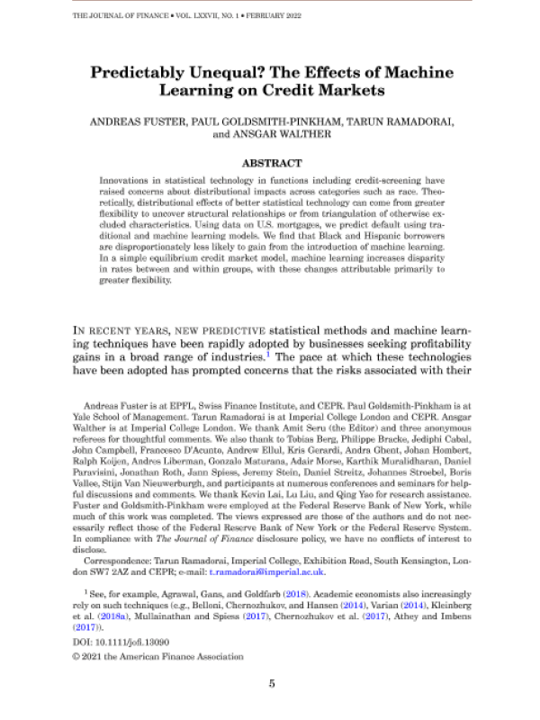 【ANDREAS FUSTER】【20220201】Predictably Unequal? The Effects of Machine Learning on Credit Markets-43页 行业研究